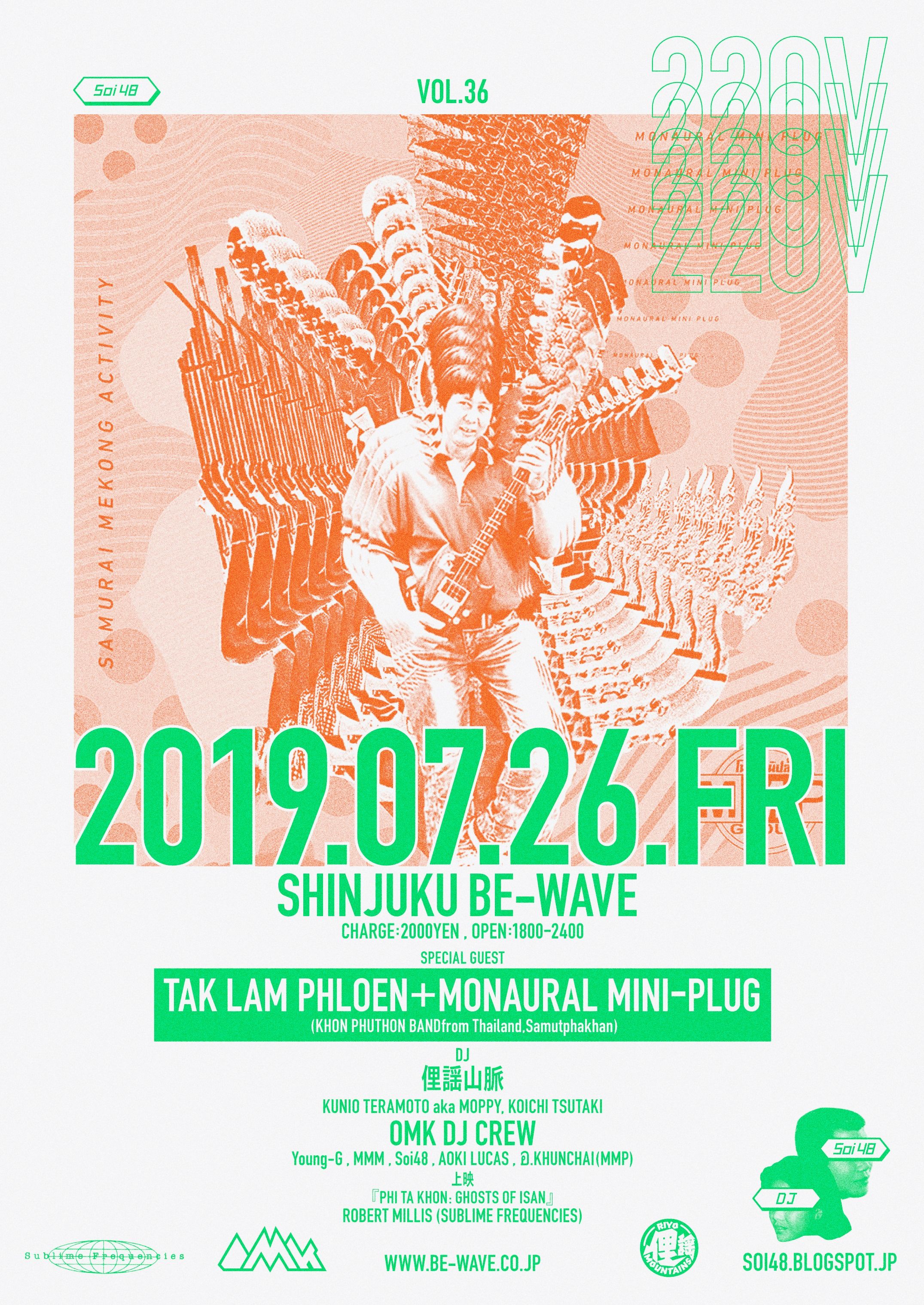 今回の夏祭りでは先日渋谷WWWβで開催された新パーティー「ADM1317」を成功させたチームOMKがサポート。ビンテージ・レコード、サイヨーを掘って進化を続けるYoung-Gとアジアの高層コンドミニアム系都会派チューンから農村DIYヒップホップまで愛するMMMのDJはメコン度高いイニシエーションを受けれる絶好の機会となること間違い無し。サイヨーに目覚めたSoi48、夏には欠かせない俚謡山脈も出演します!これが歌舞伎町の爆音夏祭りだ!220V!OMK!