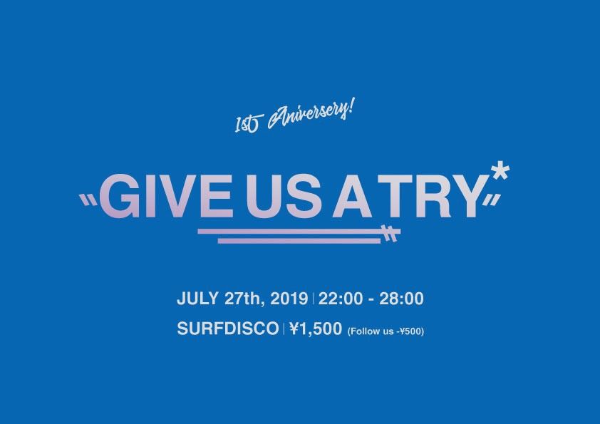 2019.07 27 JUL give us a try OTHER 0 Shares Facebook Twitter google Line DATE: 2019-07-27 SAT OPEN: 22:00 VENUE: PRICE: ASK LINE UP: ASK ASK