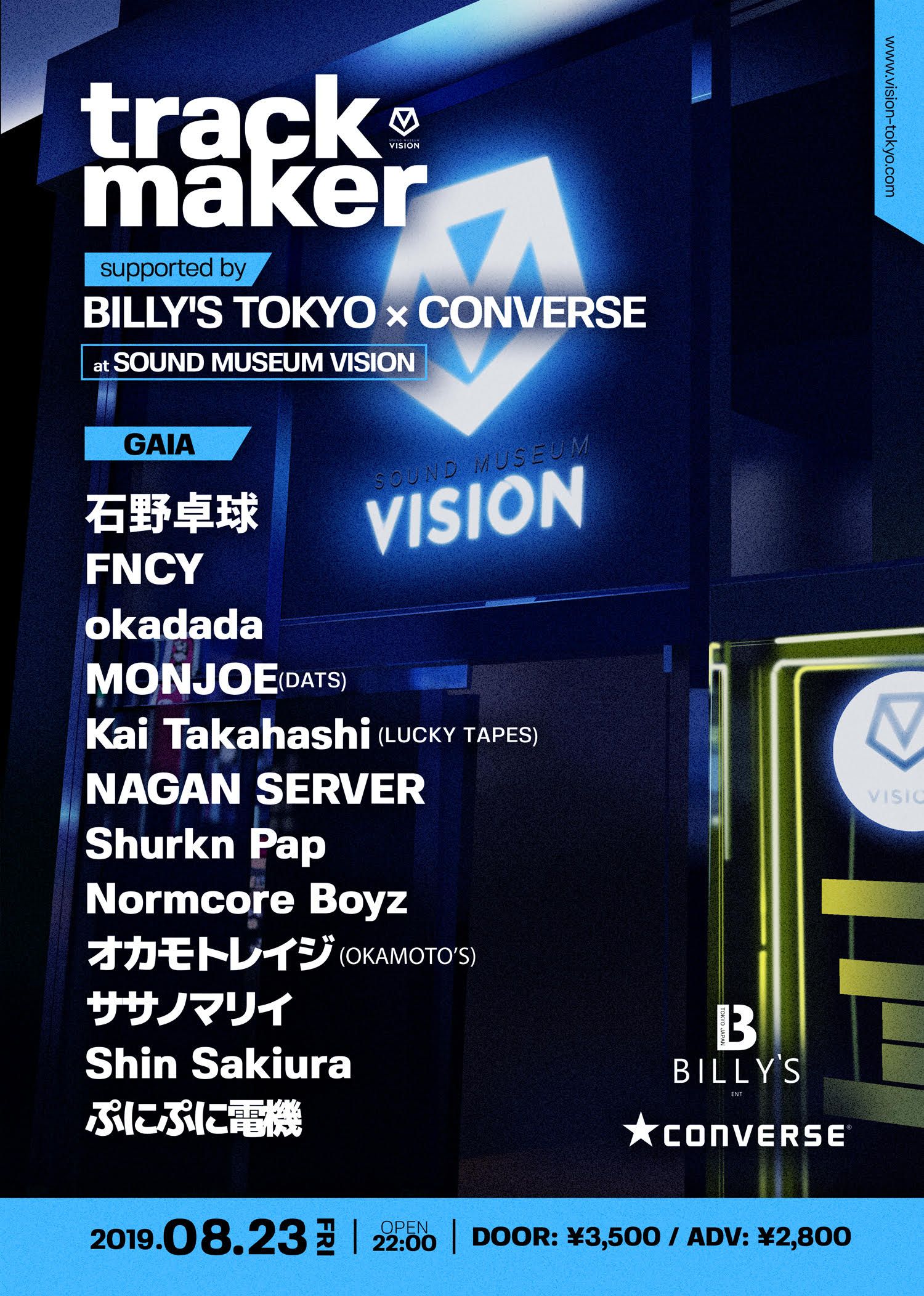 さらには、ぼくのりりっくのぼうよみのプロデュースなどを手掛けたササノマリイや、FUJI ROCK FESTIVAL 2019への出演が決定したNAGAN SERVERなど他に類を見ない超豪華ラインナップでお届けする夏のtrackmakerは見逃せない!!!