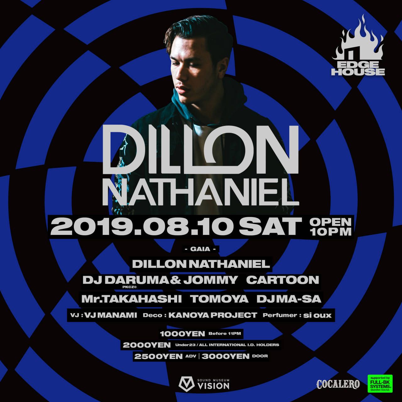 独特のベースサウンドかつ、今のHouseトレンドを完全にとらえた音作りをするDILLON NATHANIELは、今最も勢いがあるアーティストといえるでしょう。彼の東京デビューを飾る「EDGE HOUSE」をお見逃しなく!