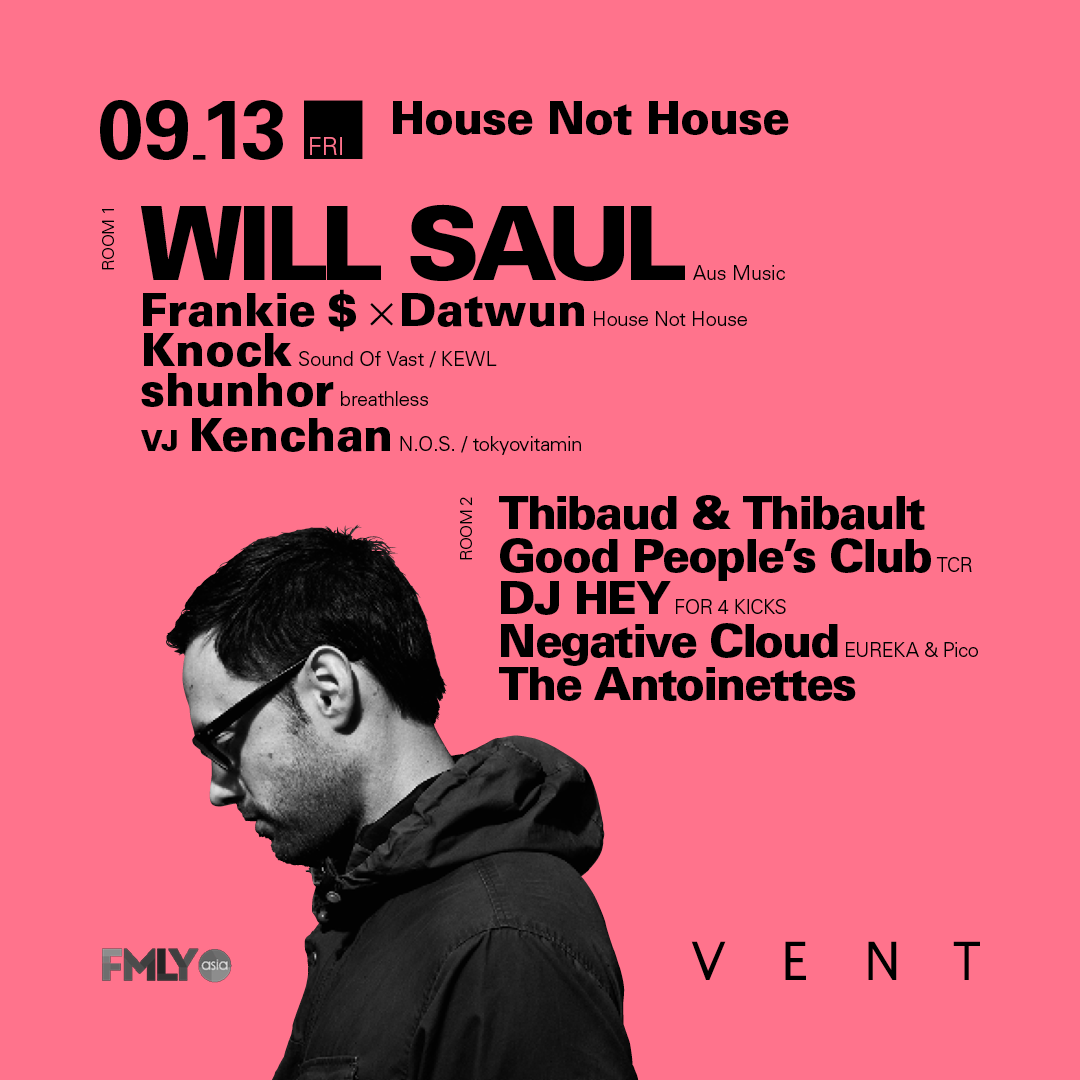 そのセンスの良さに定評のあるレーベルAus MusicとSimple Recordsの主催にして多くの才能を発掘、人気ミックスシリーズDJ Kicksをキュレートするなど、常にシーンの最前線で活躍してきたWill Saulが9月13日にVENT初登場!