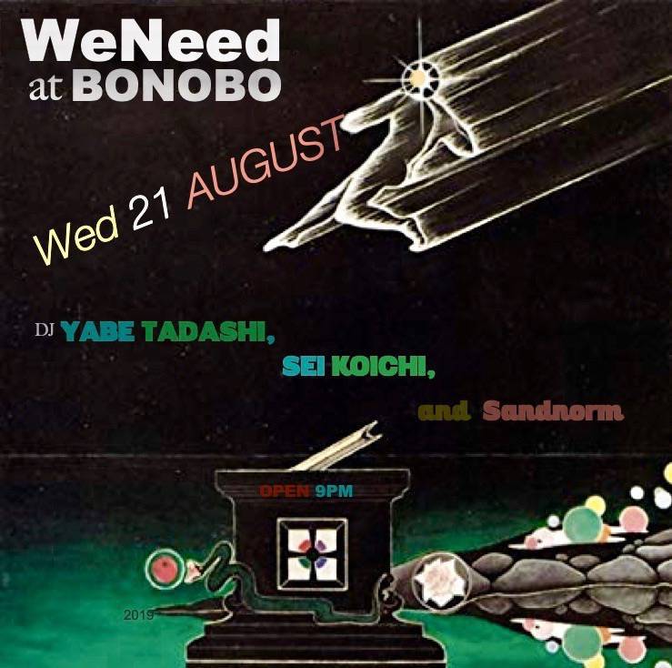 2019.08 21 AUG WeNeed PICK UP ELECTRO CROSSOVER HOUSE 0 Shares Facebook Twitter google Line 実券をお買い求めの方はこちらからご購入頂けます。 ¥ DATE: 2019-08-21 WED OPEN: 21:00 VENUE: PRICE: ¥1500/1drink LINE UP: TADASHI YABE (U.F.O.,), SEI(bar bonobo), SANDNORM http://bonobo.jp/schedule/2019/08/003288.php
