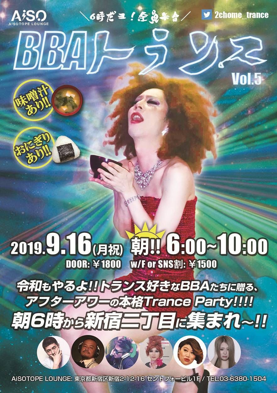 新宿二丁目発!トランス好きなBBAに贈るアフターパーティー『BBAトランス』略して“ババトラ”が今年もやってくる!!