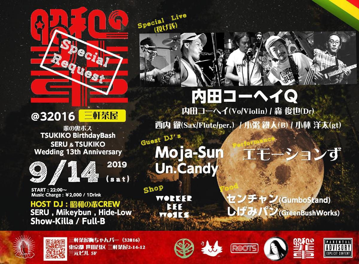 昭和の輩 SpecialRequest♪ 9月14日(土) 三茶梅ちゃんバー