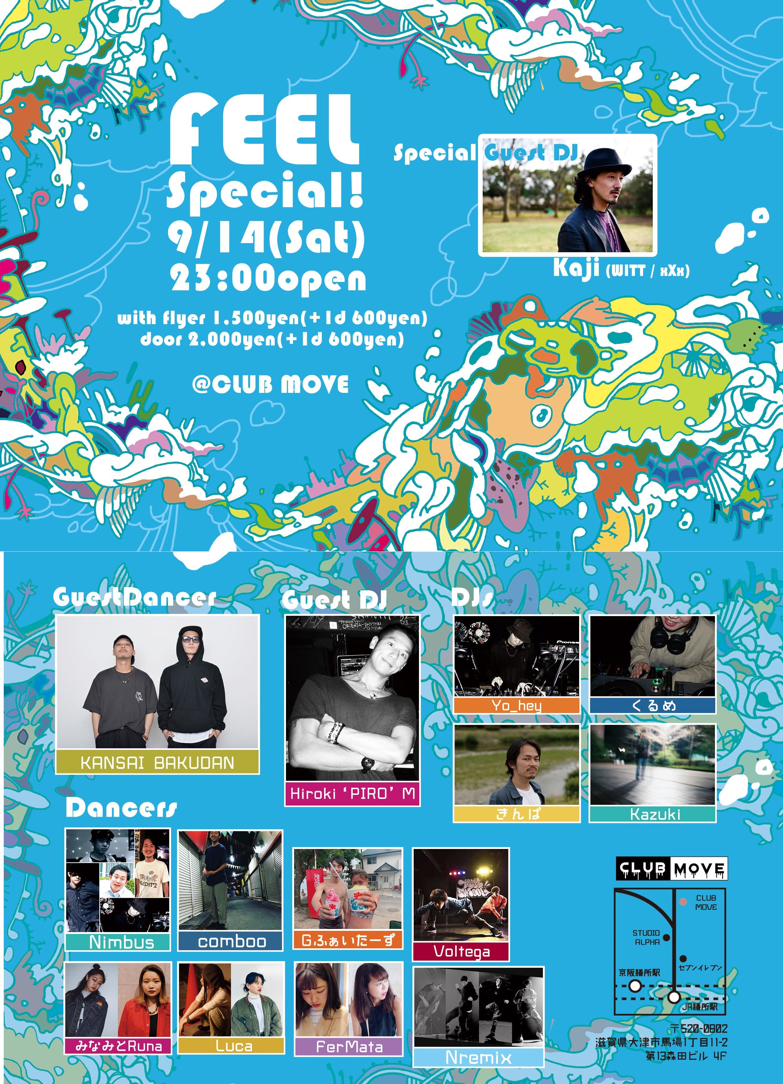 かつてFEELを引っ張ってきた関西ハウス界の要人、Hiroki 'PIRO' Mと塁もゲストに迎えての盛大な一夜。Hiroki 'PIRO' MはDJとして、塁はMUSASHIとのKANSAI BAKUDANとして出演。世代を越えたFEELの邂逅も見所です。