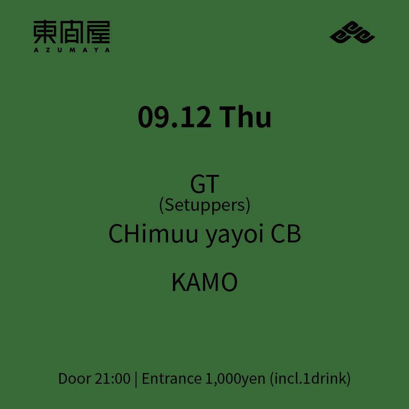 2019.09 12 SEP Azumaya -Thursday- HOUSE TECHNO 0 Shares Facebook Twitter google Line DATE: 2019-09-12 THU OPEN: 21:00 VENUE: PRICE: Entrance 1,000yen(incl. 1drink) LINE UP: GT(Setuppers) CHimuu CB yayoi KAMO