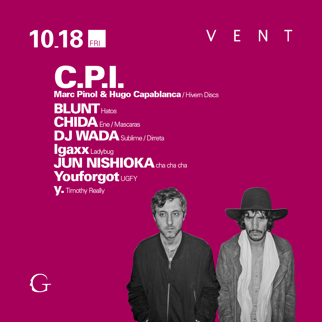 John Talabotと共に長きに渡りHivern Discsの運営に携わりThe XXにもリミックスを提供するなど、バルセロナのアンダーグラウンドシーンにおいて最も尊敬されるべきDJ/プロデューサーの一人であるMarc Pinolと、ベルリンを拠点にDiscos Capablancaレーベルを主宰するHugo CapablancaによるユニットC.P.I.が10月18日のVENTに初登場!