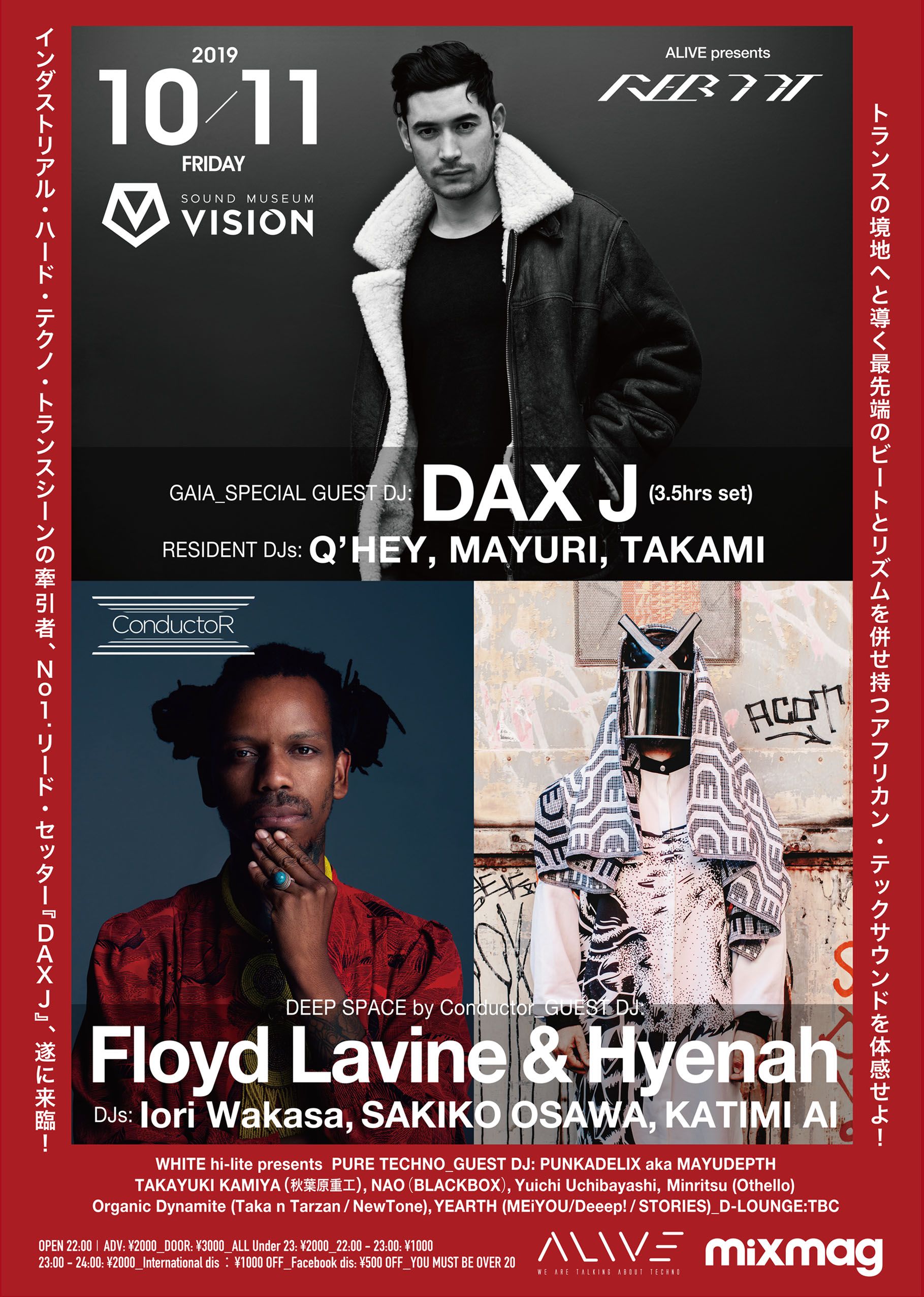 さらに” DEEP SPACE”フロアには“Black Coffee”を始め今ワールドワイドに注目を集めるアフリカン・テックサウンドの架け橋役となりドイツ・ベルリン『Berghain』や『Watergate』で大活躍する“Floyd Lavine & Hyenah”が”登場する。2015年にレーベル“RIZE”を設立。“UNITY in DIVERSITY”を掲げ、アフリカン・サウンドを発信する現行のキープレイヤー達である。
