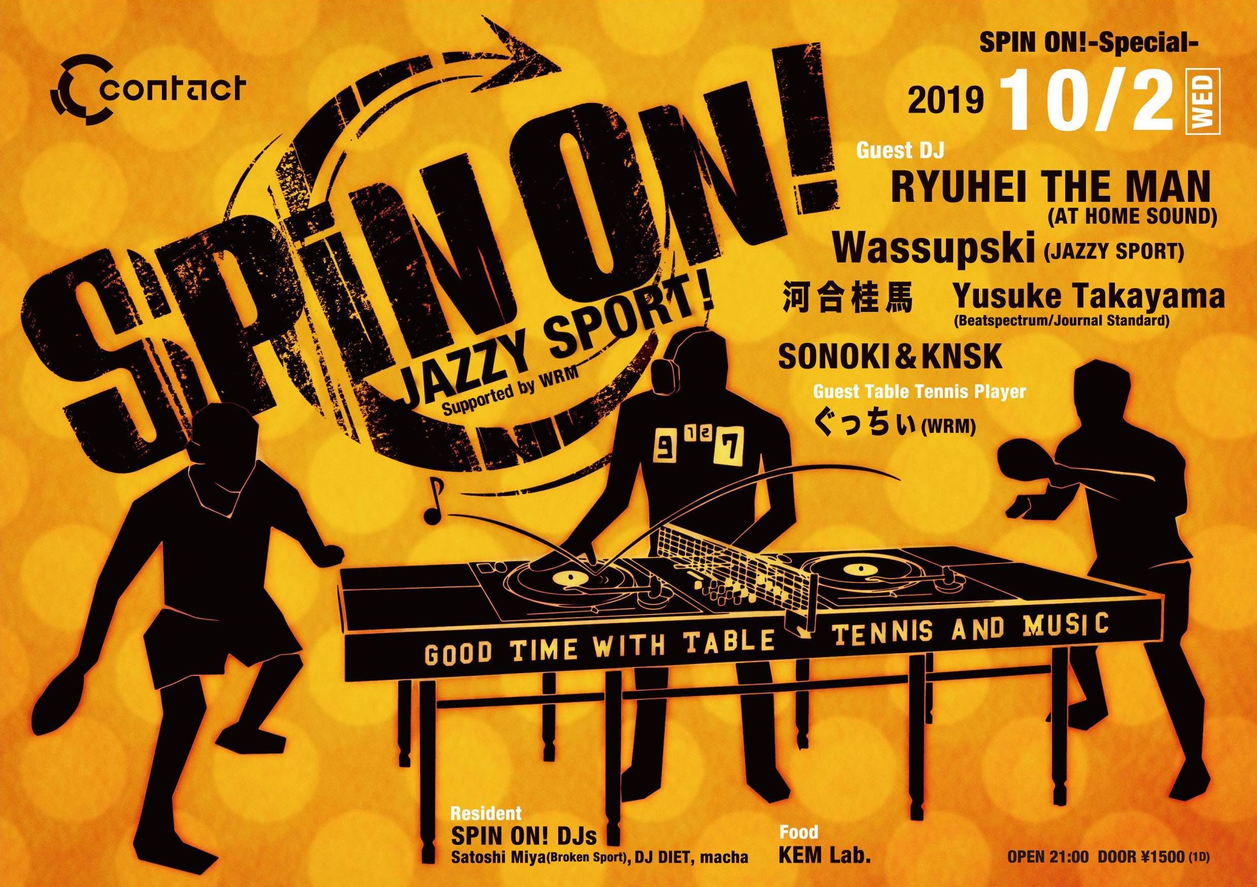 今回ゲストに、ファンク/ソウル/レアグルーヴ・マスターRyuhei The Manが登場。ジャンルと年代を超えた自由自在の選曲の中に生きる無二の快楽グルーヴは、SPIN ON! のコンセプトとこの上ないマッチングをみせるに違いない。レーベル〈JAZZY SPORT〉エグゼクティヴ・プロデューサー気仙太郎 a.k.a Wassupskiと同レーベル専属のダンスクルーBROKEN SPORTのSatoshi Miya。Journal StandardからYusuke Takayama、GREENROOM FESTIVALの出演や日本最大のキャンプイベントGO OUT JAMBOREEの最多連続出演アーティスト記録を更新中の河合桂馬。加えて、メロウかつ深みのある選曲で都内のホステル、カフェからクラブまで幅広い現場で活動するSONOKI、KNSKの2人も参戦。終夜幸福な時間が流れる。そして、今回も人気卓球YouTuberのぐっちぃが参戦! プロの美技を堪能、そしてぜひ挑戦してほしい。SPIN ON! が魅せる“スポーツの秋”は最高にクールでハッピーだ。