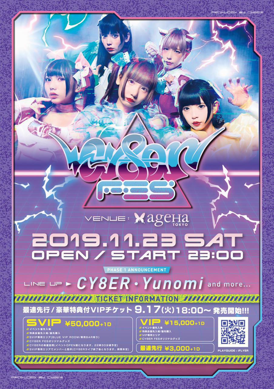 6月23日にTokyo Dome City Hallでのワンマンライブを成功させ11月23日に新木場ageHaでCY8ER史上初となるオールナイトフェス「CY8ER FES」を開催する。