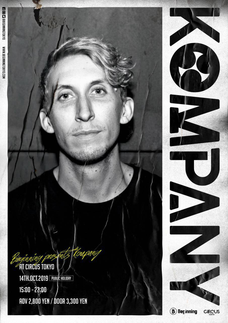 2019.10 14 OCT Beginning presents Kompany DUBSTEP DISCO 0 Shares Facebook Twitter google Line 実券をお買い求めの方はこちらからご購入頂けます。 ¥ DATE: 2019-10-14 MON OPEN: 15:00 VENUE: PRICE: 2800円+別途ドリンク代600円 LINE UP: Kompany