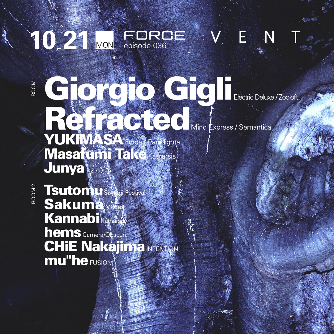 Donato DozzyやDino Sabatiniと共にイタリアを飛び出し世界のデイープテクノシーンを牽引するGiorgio Gigliと、Oscar MuleroやSvrecaがプッシュするRefractedが祝前日である10月21日に開催されるFORCEに登場!
