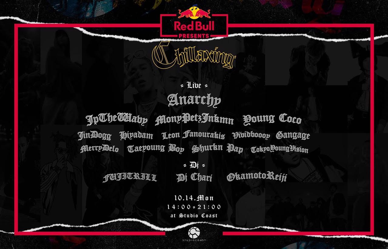 わずか3年でビッグパーティに成長した「Chillaxing」が、Red Bullと共同企画で史上最大級のビッグパーティを10月14日(月・祝)新木場のSTUDIO COASTで開催。