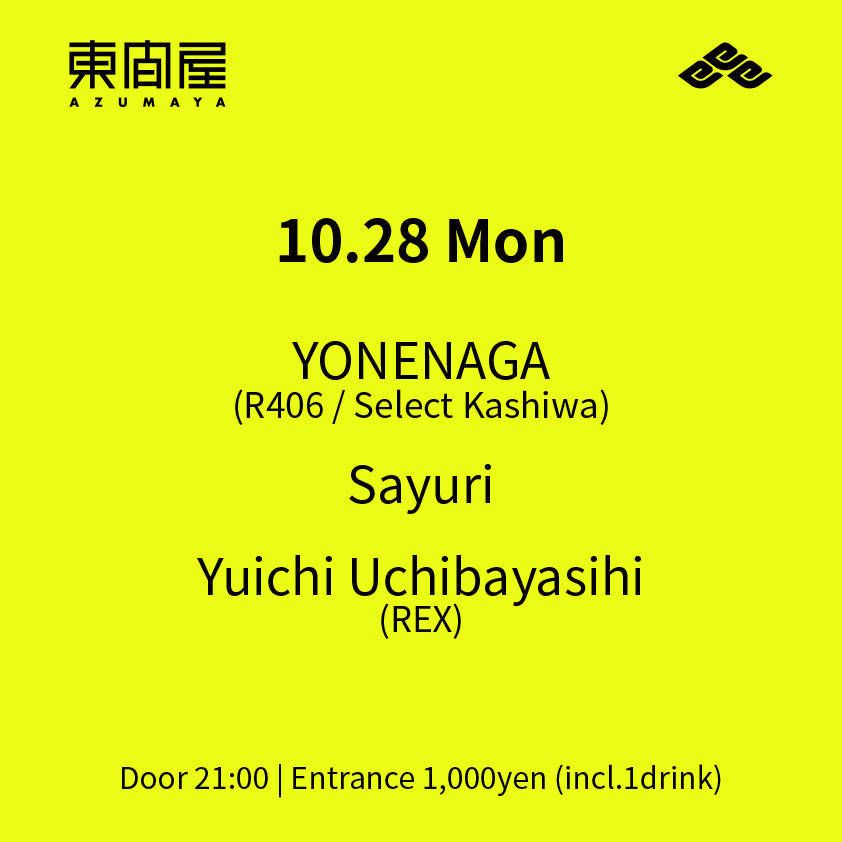 2019.10 28 OCT Azumaya -Monday- HOUSE 0 Shares Facebook Twitter google Line DATE: 2019-10-28 MON OPEN: 21:00 VENUE: PRICE: Entrance 1,000yen(incl. 1drink) LINE UP: YONENAGA(R406 / Select Kashiwa) Sayuri Yuichi Uchibayasihi(REX)