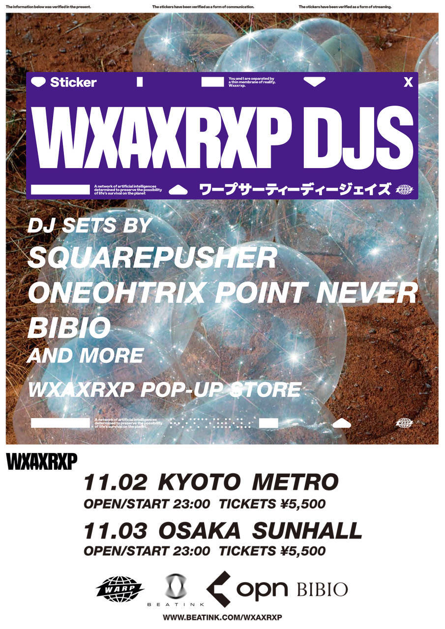 先鋭的アーティストを数多く輩出し、クリエイティブかつ衝撃的なMVやアートワークの分野においても、音楽史に計り知れない功績を刻み続け、今年30周年を迎えた〈WARP RECORDS〉。その偉大なる歴史を祝し、スクエアプッシャー、ワンオートリックス・ポイント・ネヴァー、ビビオが一堂に会するスペシャルDJツアー『WXAXRXP DJS (ワープサーティーディージェイズ)』を東京〜京都〜大阪で開催決定!