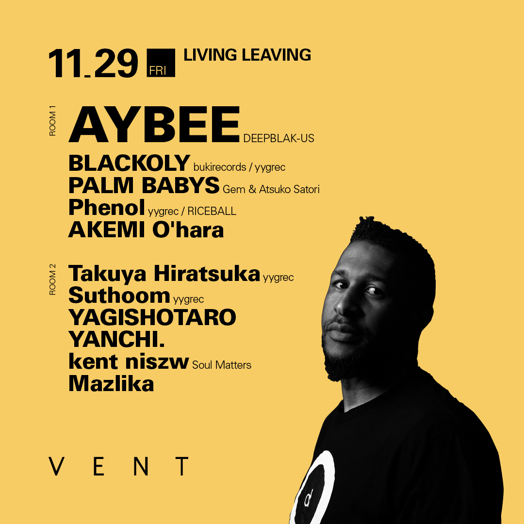 今回出演するパーティーLIVING LEAVINGはJoey AndersonやDJ Quの作品のリリースを手掛けてきたレーベルyygrecが主宰し、これまでも国内外の多彩なアーティストを招聘し幾度となくエッジの効いた空間を創り出してきた良質なパーティーだ。ジャンルの壁を壊すイノベイティブな音楽体験をVENTのフロアで感じ取ってほしい!