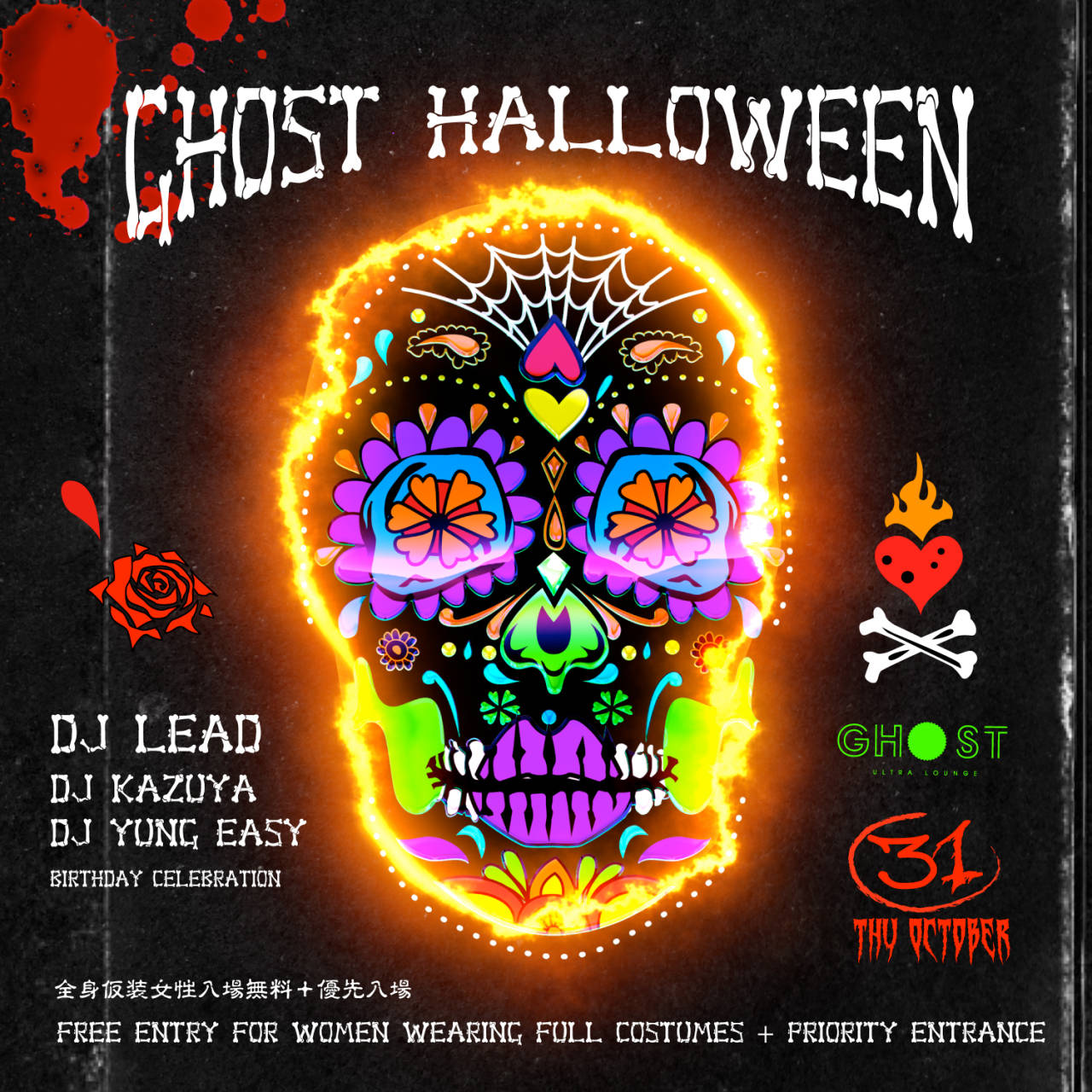 - Free entry for women wearing full costumes + Priority Entrance / 全身仮装女性入場無料+優先入場 // 【特別日】男性 3500円(1ドリンク付) / 女性 1500円(1ドリンク付) // <Non Japanese>MEN 3500YEN with One Drink Included / WOMEN 1500YEN with One Drink Included
