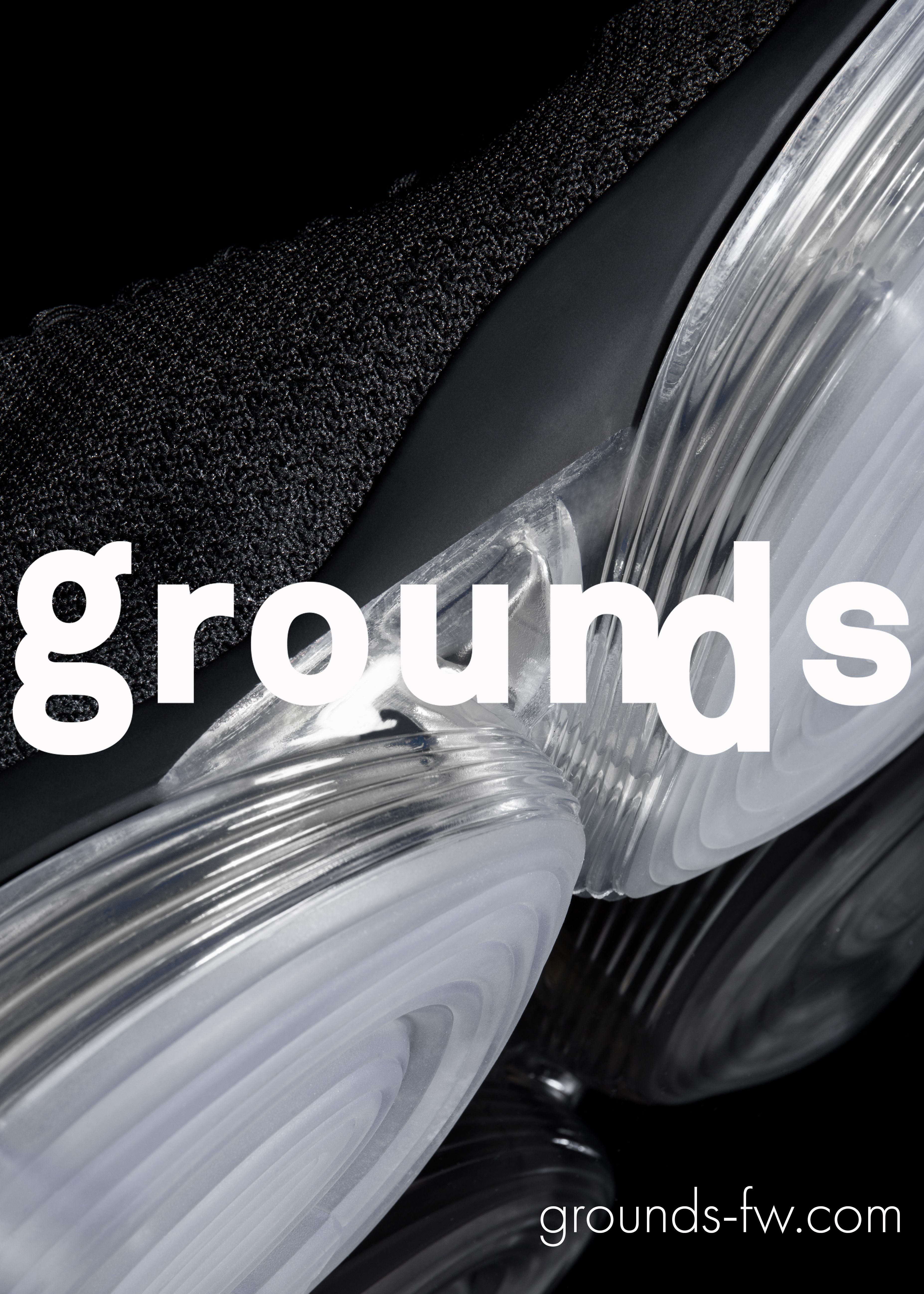 「grounds」は”LEAP GRAVITY”を掲げ、「人間と重力(地球) の関係に変化をもたらすこと」「人間と重力(地球)の接点であ るアウトソールと地面を中心とした人間像作り」をコンセプトと しており、ソールの形状が特徴的なブランドになります。過去に は、2019s/s paris collection に参加し、国内外で注目を集めるブランドです。
