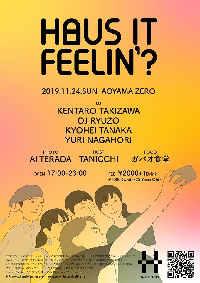 今やサンデイアフタヌーンパーティーの新定番になりつつある青山ZEROで開催中の”Haus It Feelin’ ?”。当パーティーは愛、情熱、笑顔、などポジティブなオーラで包まれ、まさに「多幸感」という言葉がピッタリな空間になっています。また、ハウスミュージックを楽しむ上でも、最も重要なポイントは「多幸感」であり、毎回多くのフォロワーがハウスと笑顔とともに増え続けています。年内最後のHaus It Feelin’ ?、一度足を運んでみてはいかがでしょう?