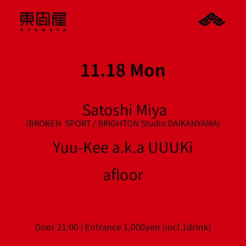 2019.11 18 NOV Azumaya -Monday- HOUSE 0 Shares Facebook Twitter google Line DATE: 2019-11-18 MON OPEN: 21:00 VENUE: PRICE: Entrance 1,000yen(incl. 1drink) LINE UP: Satoshi Miya(BROKEN SPORT / BRIGHTON Studio DAIKANYAMA) Yuu-Kee a.k.a UUUKi afloor