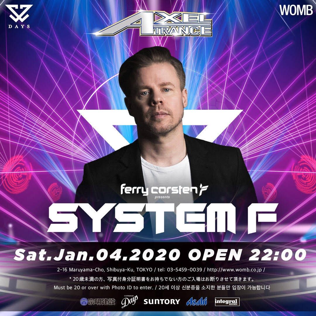 トランス界のレジェンド 「Ferry Corsten(フェリー・コーステン)」 こと 『SYSTEM F(システムF)』 が1月4日(土)渋谷 WOMB に登場!