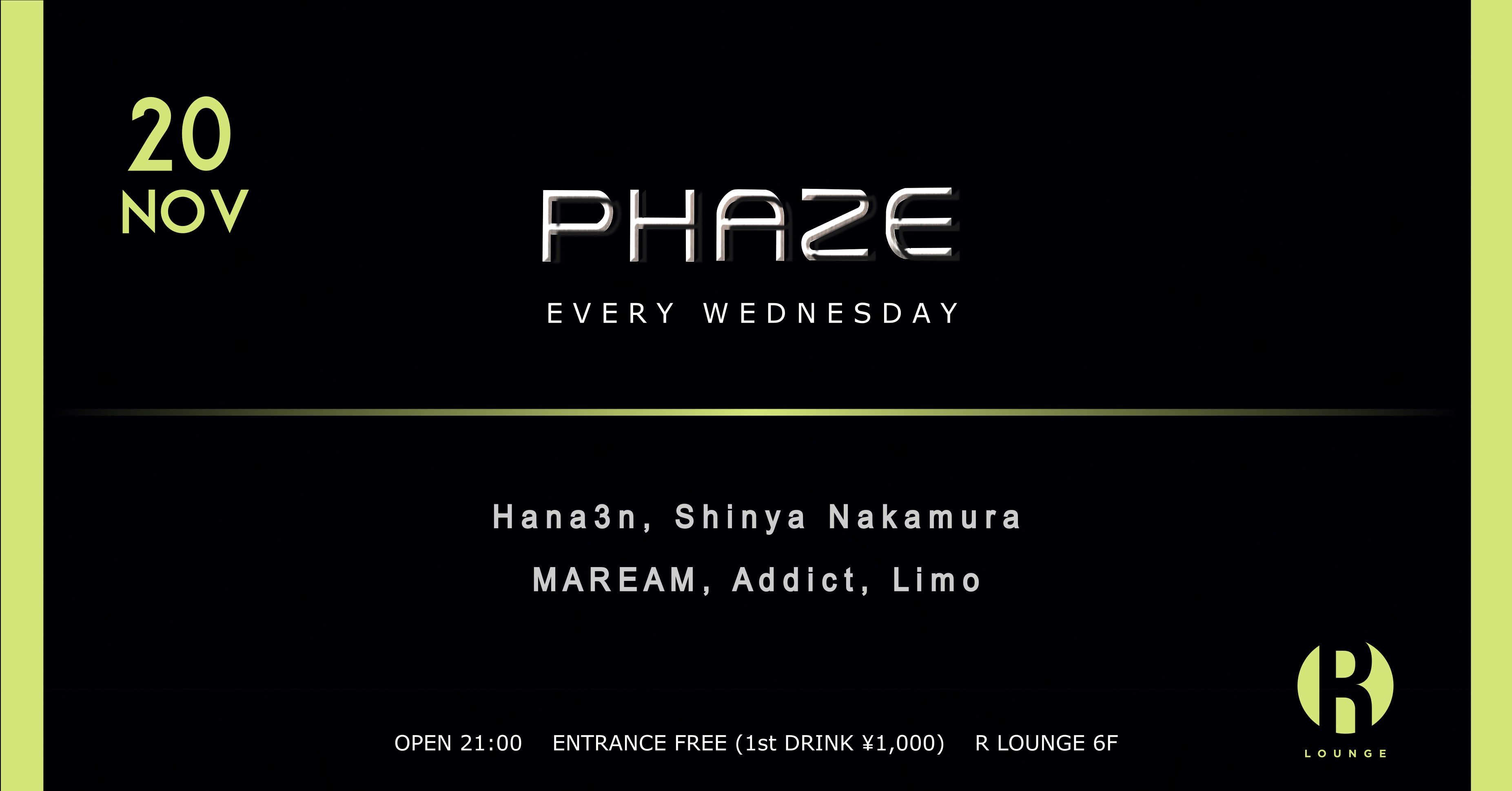- ENTRANCE FREE (1st DRINK ¥1,000)