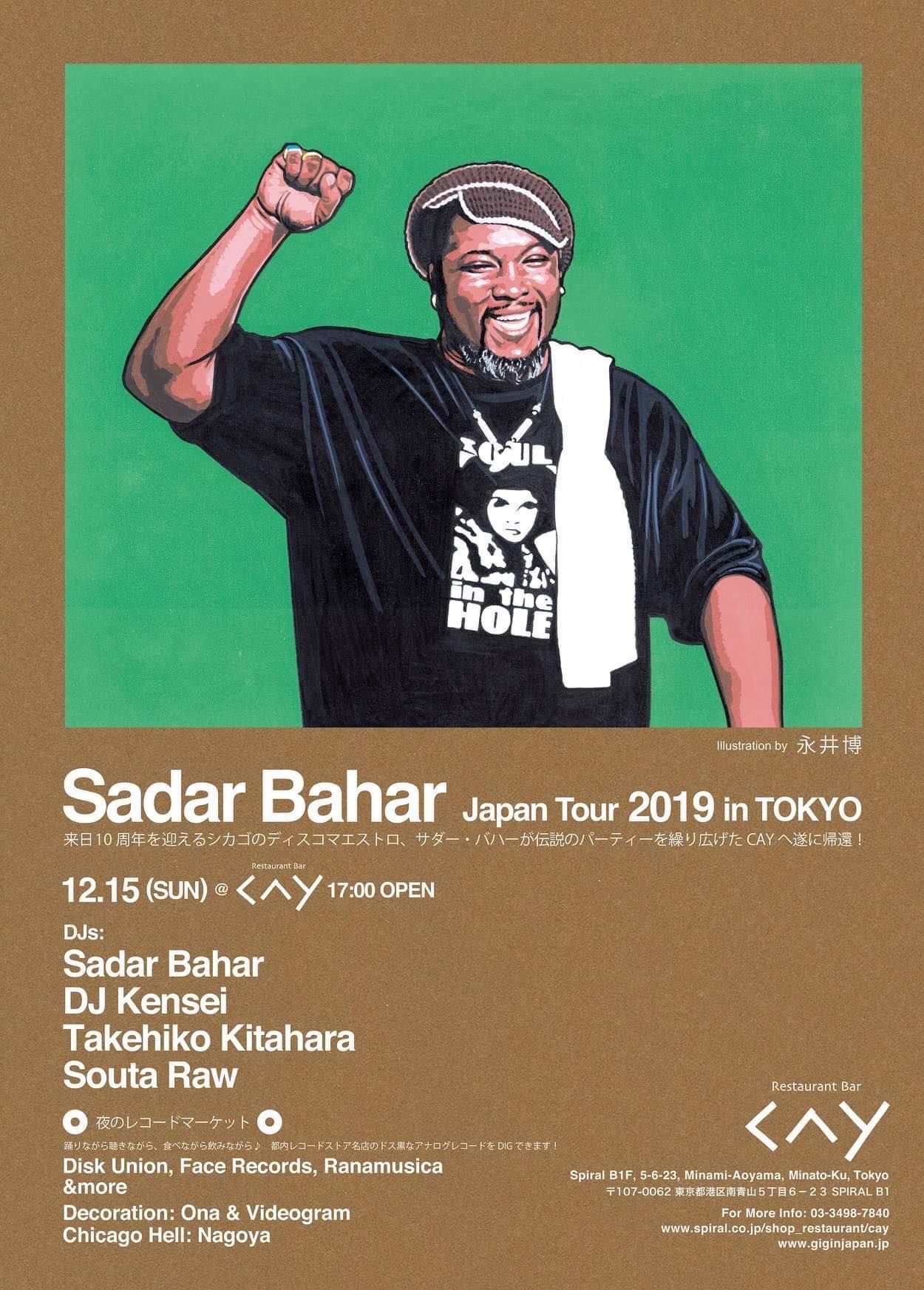 来日10周年迎えるシカゴ最深部のディスコマエストロ、サダー・バハーが伝説のパーティーを繰り広げたCAYへ遂に帰還!彼の全身全霊のロングセットを体験することで人生が変わってしまった人が続出。オールバイナルでのDJプレイから繰り広げられる唯一無二な音の波動を目の前で体験できる貴重な日曜日。