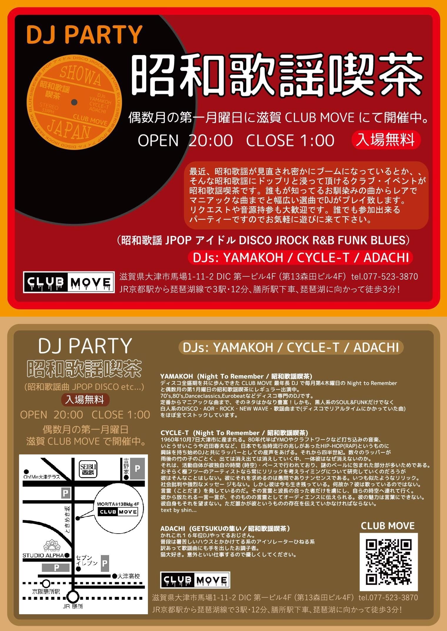 偶数月の第一月曜日に滋賀CLUB MOVEにて開催中。