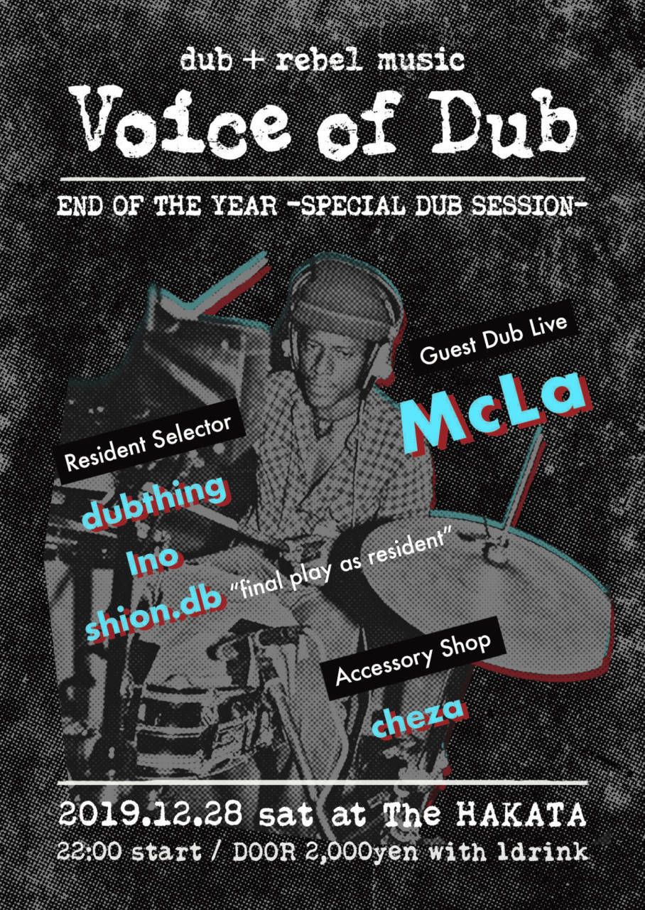Vol.40は年末ダブ納め「End of The Year Special Dub Session」ということで、ダブワイズ・セッション・バンドMcLaと共に、2019年の最終回を締めくくります。さらに、レジデントセレクターとして2013年の初回からVoice of Dubを作り上げてきたshion.dbが"年内でDJ活動を終了"ということで、今回が最後の出演となります。