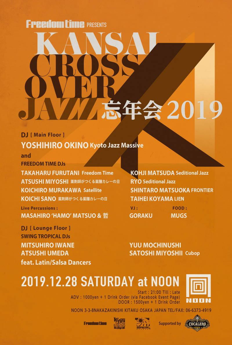 毎回好評のイベントFreedom Time presents KANSAI CROSSOVER JAZZ。昨年に続き今年も忘年会スペシャルをNOONにて開催します!