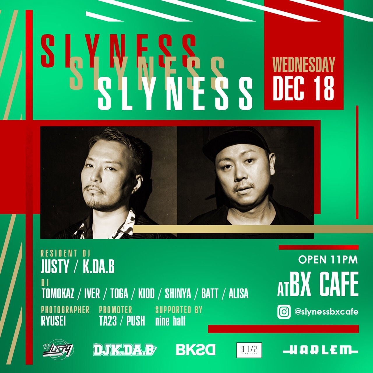 2019.12 18 DEC ダンサーズ大忘年会 HIPHOP ALLMIX 0 Shares Facebook Twitter google Line DATE: 2019-12-18 WED OPEN: 23:00 VENUE: PRICE: ¥3,000/1d ADV. ¥2,000/1d LINE UP: [HARLEM] ダンサーズ大忘年会 GUEST DJ: KANGO DJ: TATSU, TAK HOST: PInO, MASAKI, HERO, TATSU [BX CAFE] SLYNESS RESIDENT DJ: JUSTY, K.DA.B DJ: TOMOKAZ, TOGA, KIDD, SHINYA, BATT, ALISA PROMOTER: TA23, PUSH SUPPORTED BY nine half [HARLEM] ダンサーズ大忘年会 GUEST DJ: KANGO DJ: TATSU, TAK HOST: PInO, MASAKI, HERO, TATSU [BX CAFE] SLYNESS RESIDENT DJ: JUSTY, K.DA.B DJ: TOMOKAZ, TOGA, KIDD, SHINYA, BATT, ALISA PROMOTER: TA23, PUSH SUPPORTED BY nine half