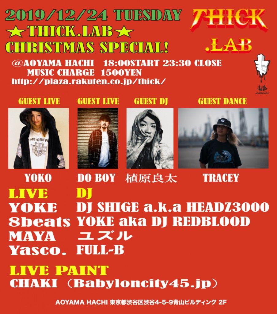 DISCO,SOULの膨大な知識を持つDJ、ユズル、DANCEHALLで踊らせてくれるDJ FULL-Bなど、THICKの個性的なDJ陣達がフロアを彩ります!