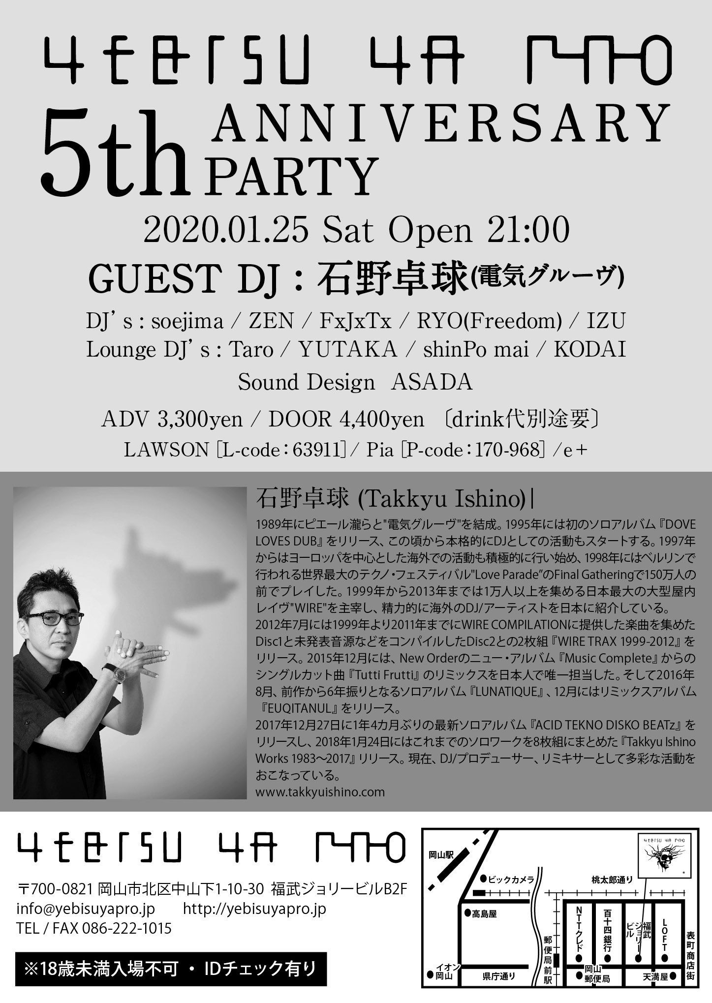 YEBISU YA PRO 5th ANNIVERSARY PARTY GUEST DJ: 石野卓球(電気グルーヴ)