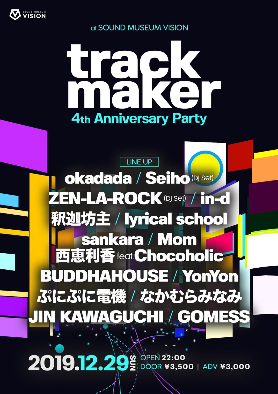 DJにはtrackmakerではお馴染みのokadada、Seiho、ZEN-LA-ROCK、YonYonが出演。