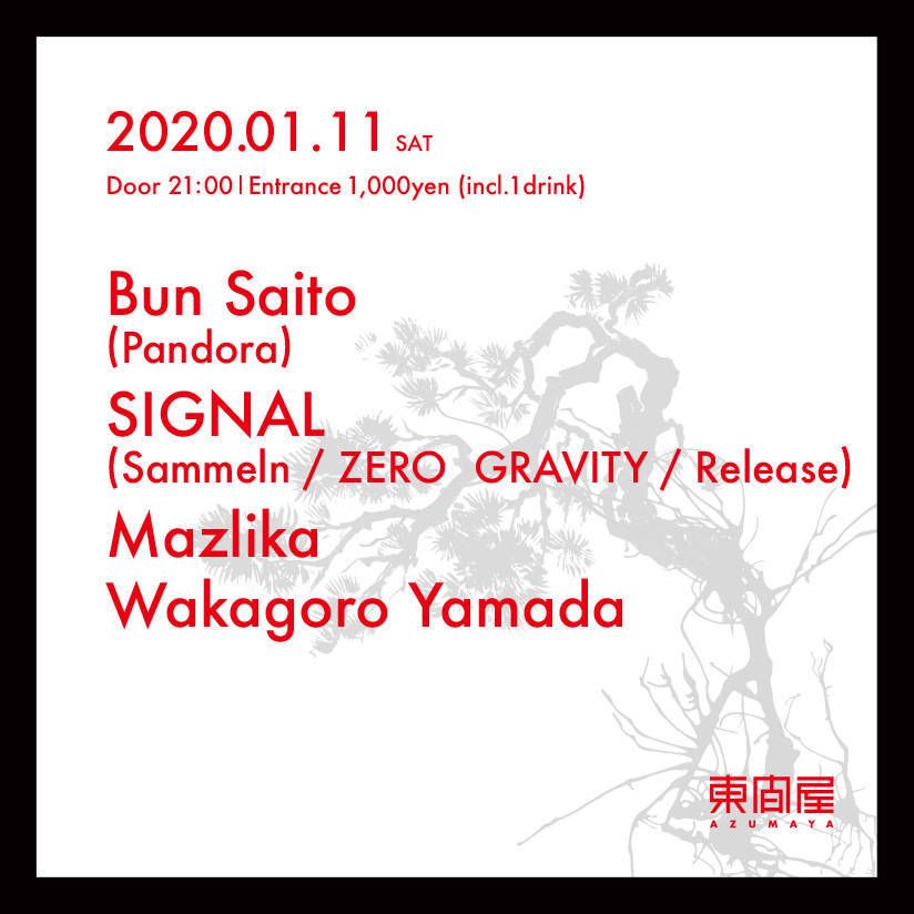 2020.01 11 JAN Azumaya -Saturday TECHNO HOUSE 0 Shares Facebook Twitter google Line DATE: 2020-01-11 SAT OPEN: 21:00 VENUE: PRICE: Entrance 1,000yen(incl. 1drink) LINE UP: Bun Saito(Pandora) SIGNAL(Sammeln / ZERO GRAVITY / Release) Mazlika Wakagoro Yamada