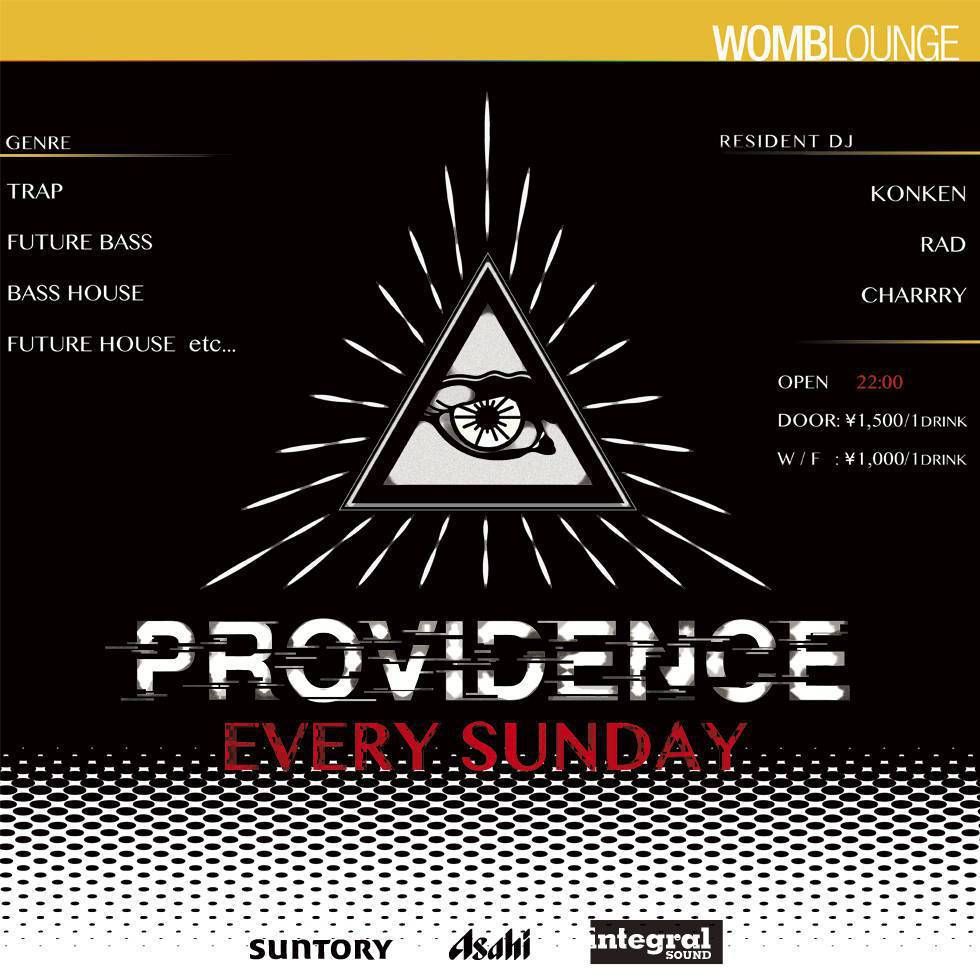 日曜日の夜に、東京のナイトライフに現れた世界基準の新感覚パーティーが開かれる。もはや世界標準の HIP HOP から派生した TRAP、FUTURE BASS や新定番の BASS HOUSE、FUTURE HOUSE など BASS MUSIC を中心に世界のトレンドを同じスピードで体感できる唯一無二のイベント、PROVIDENCE。このイベントに導かれた貴方は既存のクラブに物足りないと感じていた何かが見つかる。エッジ―な選曲、ファッショナブルなオーディエンス、華やかなコミュニティー。この PROVIDENCE が東京のナイトライフの新定番になる日もそう遠くない。