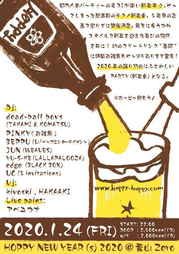 都内人気パーティーの各DJが揃い新年早々、やってしまった感満載のテクノ新年会、5年目の新春も懲りずに開催決定です。貴方に合う中外スタイルで新年を迎えた喜びの祝杯を共に! 幻のフリードリンク"直球"に特製お雑煮もやっぱりあります宣言!!!
