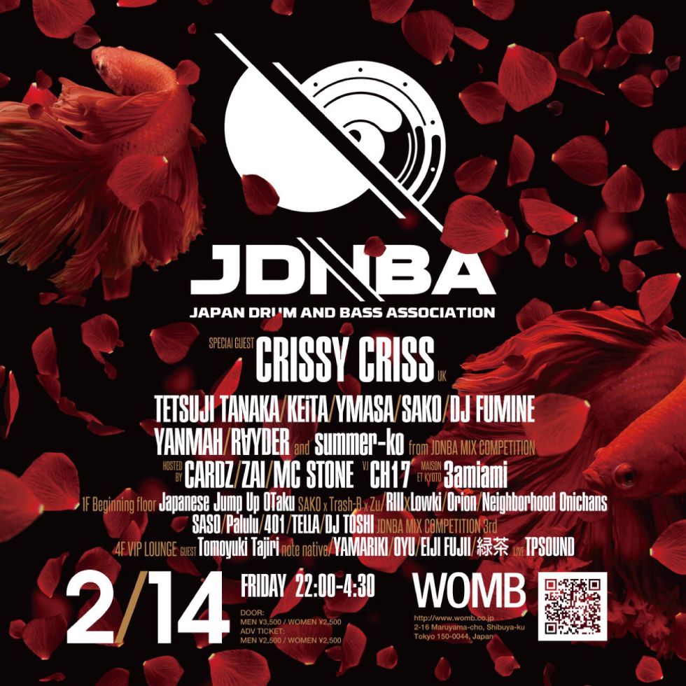 WOMBプレゼンツによる日本中を巻き込むブランニュー・ドラムンベース・パーティー“JDNBA (JAPAN DRUM&BASS ASSOCIATION)”が2/14バレンタインデーに今年初開催!90年代中期から始まる細分化された国内ドラムンベース・シーンの繋がりを再びWOMBに集結。シーンの一体化を図りDNB本来のクリエーティブな空間演出をプロデュースします。