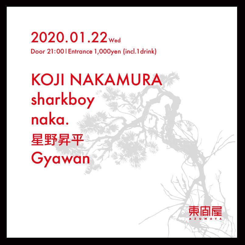 2020.01 22 JAN Azumaya -Wednesday- HOUSE TECHNO 0 Shares Facebook Twitter google Line DATE: 2020-01-22 WED OPEN: 21:00 VENUE: PRICE: Entrance 1,000yen(incl. 1drink) LINE UP: KOJI NAKAMURA sharkboy naka. 星野昇平 Gyawan