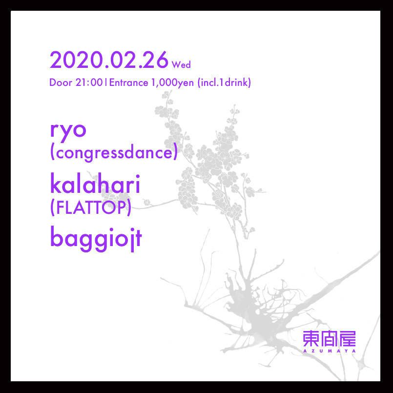 2020.02 26 FEB Azumaya -Wednesday- HOUSE TECHNO 0 Shares Facebook Twitter google Line DATE: 2020-02-26 WED OPEN: 21:00 VENUE: PRICE: Entrance 1,000yen(incl. 1drink) LINE UP: ryo(congressdance) kalahari(FLATTOP) baggiojt