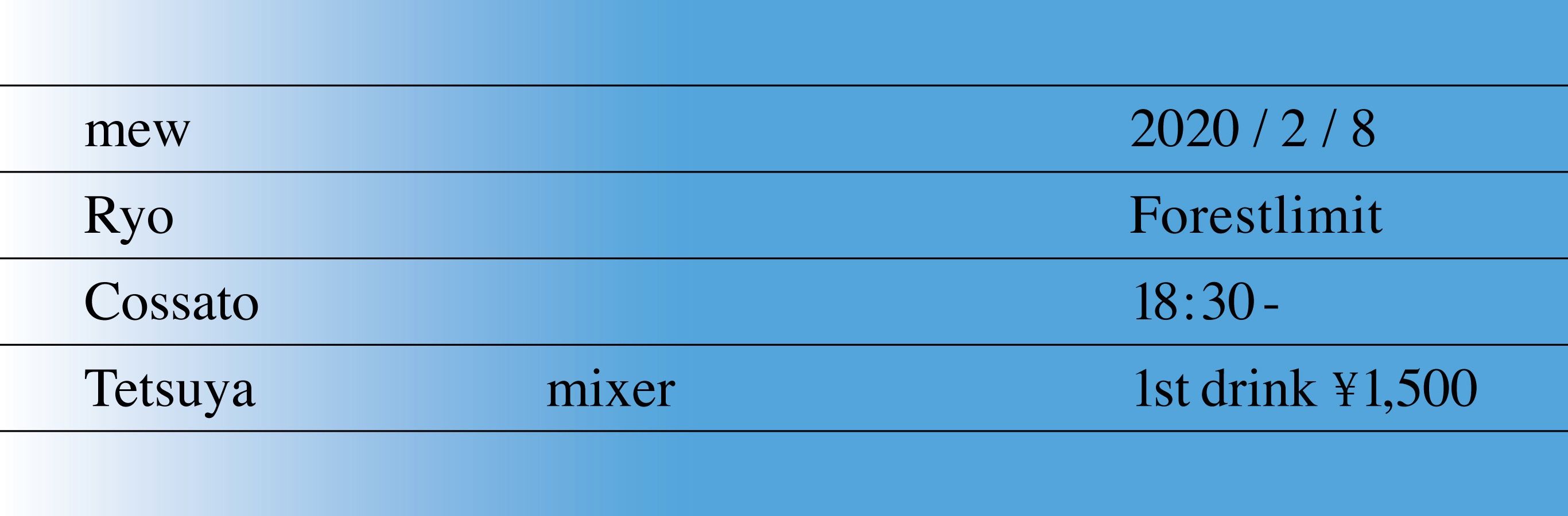 2020.02 08 FEB - TECHNO BASS MUSIC DEEP HOUSE 0 Shares Facebook Twitter google Line DATE: 2020-02-08 SAT OPEN: 18:30 VENUE: PRICE: 1st drink 1,500 / JPY LINE UP: mew Ryo Cosatto Tetsuya Visuals: mixer