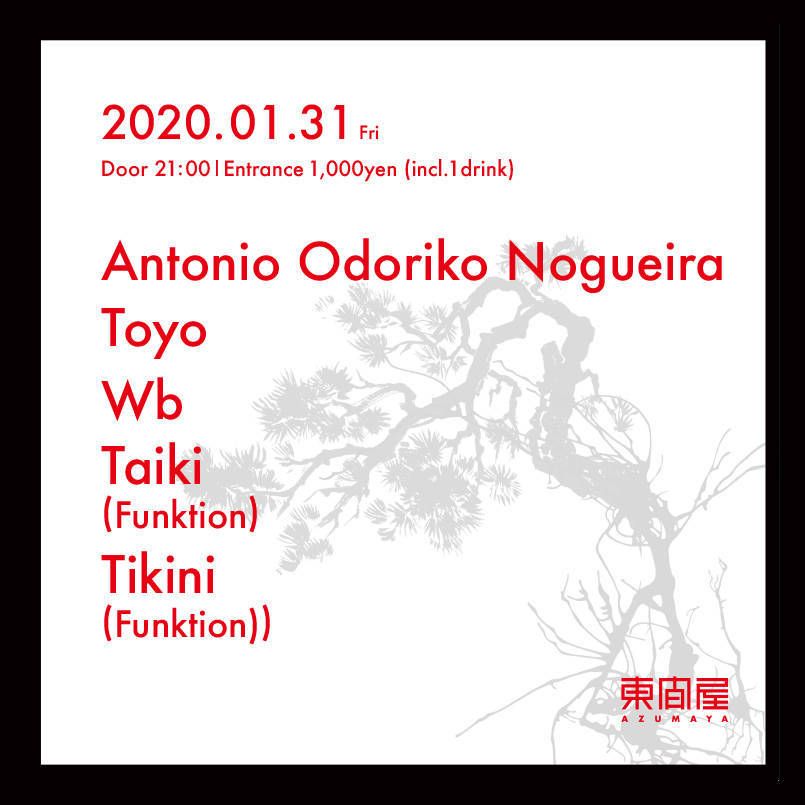 2020.01 31 JAN Azumaya -Friday- HOUSE TECHNO 0 Shares Facebook Twitter google Line DATE: 2020-01-31 FRI OPEN: 21:00 VENUE: PRICE: Entrance 1,000yen(incl. 1drink) LINE UP: Antonio Odoriko Nogueira TOYO Wb Taiki (Funktion) Tikini (Funktion)