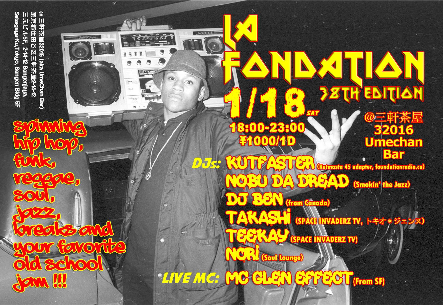 LA FONDATION Crew is proud to present our party's 38th edition, our first in this new 2020's era. Our Djs will rock the place for an unforgettable event. Let's set Sangenjaya on fire !!! Dope DJ sets, fire live MC and Special Jams !!!