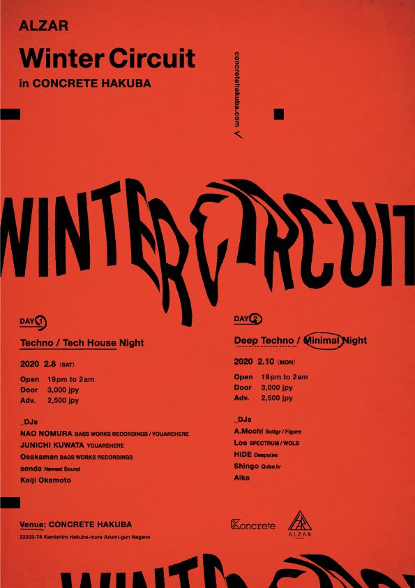 2019年3月に幕を下ろした大阪のナイトクラブ ”ALZAR OSAKA” のスピンオフイベントが長野県、白馬のベニュー “CONCRETE HAKUBA”にて2日間限定で開催。