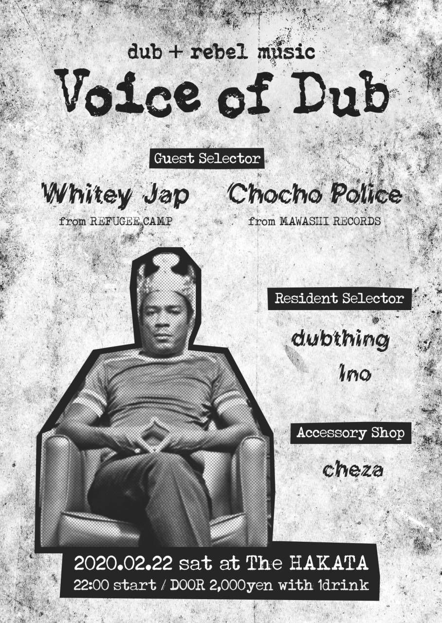 世界各地の路地裏で異種配合されてきたダブミュージックの変遷に思いを馳せて、2020年の1発目Vol.41はMAWASHI RECORDSよりChocho Police、そしてREFUGEE CAMPよりWhitey Japの2ゲストが参戦。