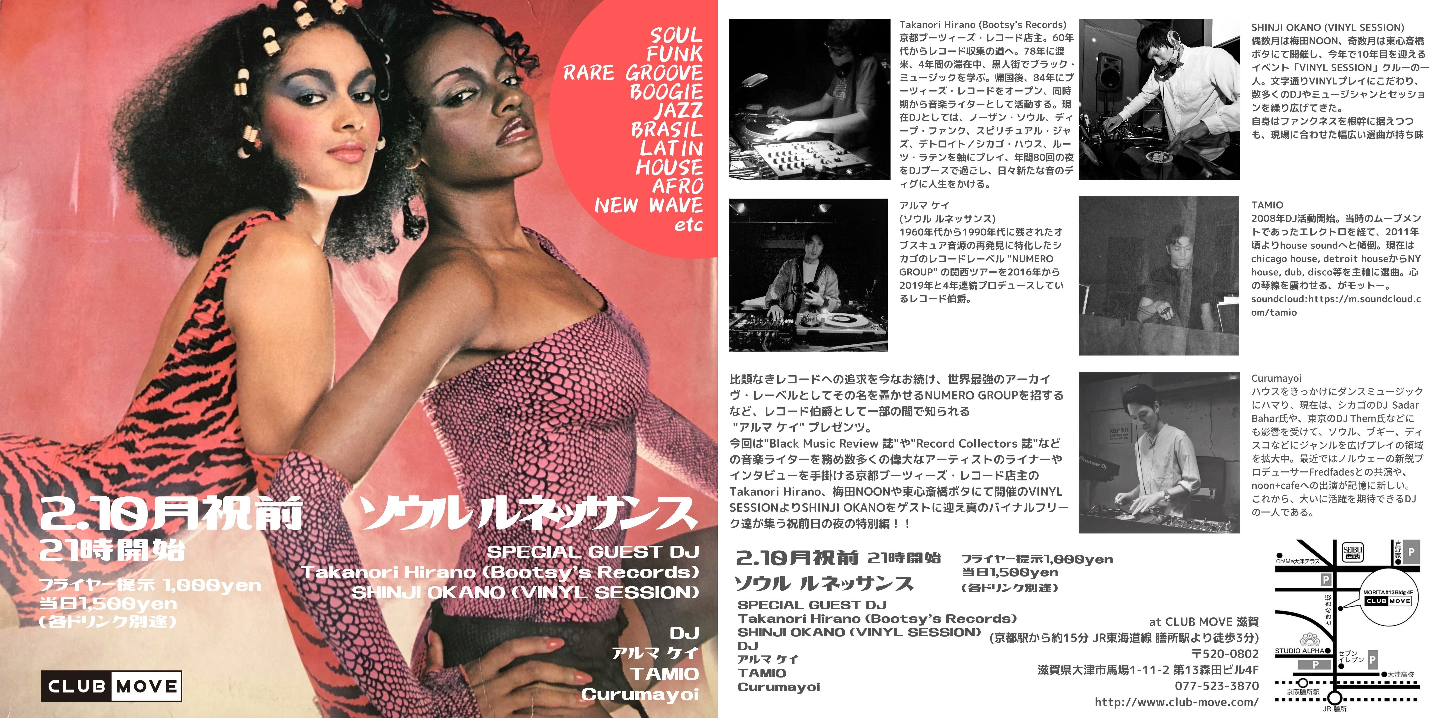 - SPECIAL GUEST DJ : Takanori Hirano (Bootsy's Records) / SHINJI OKANO (VINYL SESSION)