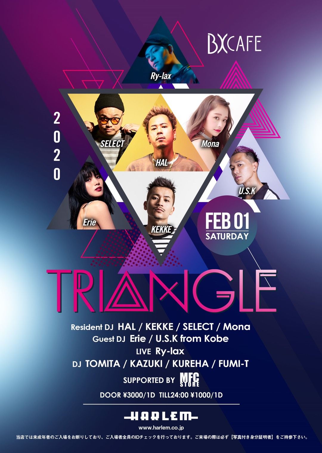 - LADIES ¥2,500/1d MEN ¥3,500/1d *till 24:00 ¥1,500 ※ 20歳の方は入場無料!