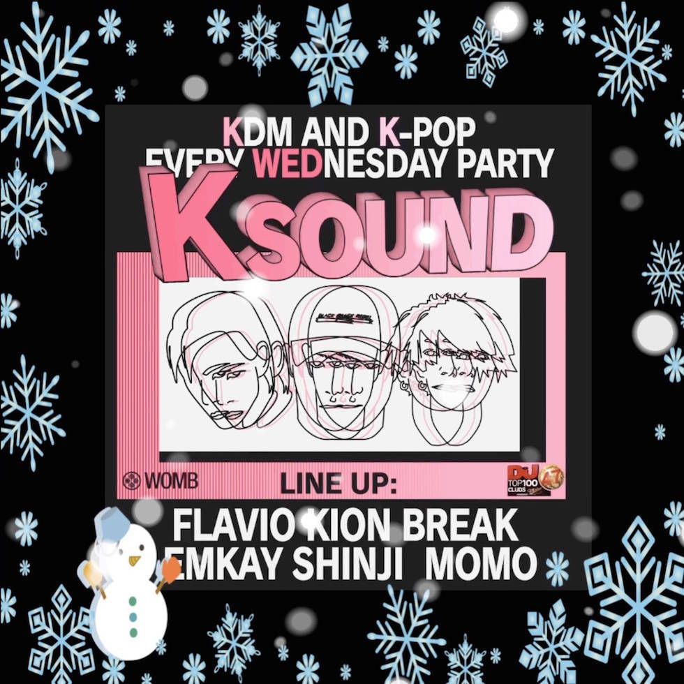 東京の水曜日を熱くするパーティー WEDNESDAY PARTY "KSOUND"。韓国のCLUBシーンのダンスミュージック を中心に今流行りの音楽が一晩中聞けちゃうこのパーティーに WOMB で開催している KONNECT のレジデントでもある FLAVIO 等が出演!一度来たら "KSOUND" の中毒になること間違い無し!