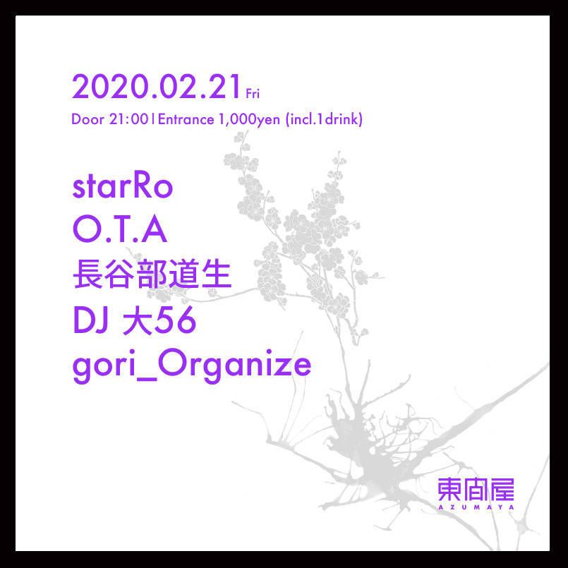 2020.02 21 FEB Azumaya -Friday- HOUSE 0 Shares Facebook Twitter google Line DATE: 2020-02-21 FRI OPEN: 21:00 VENUE: PRICE: Entrance 1,000yen(incl. 1drink) LINE UP: starRo O.T.A 長谷部道生 DJ 大56 gori_Organize