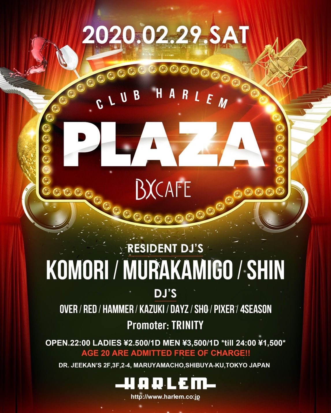 - LADIES ¥2,500/1d MEN ¥3,500/1d *till 24:00 ¥1,500 ※ 20歳の方は入場無料!